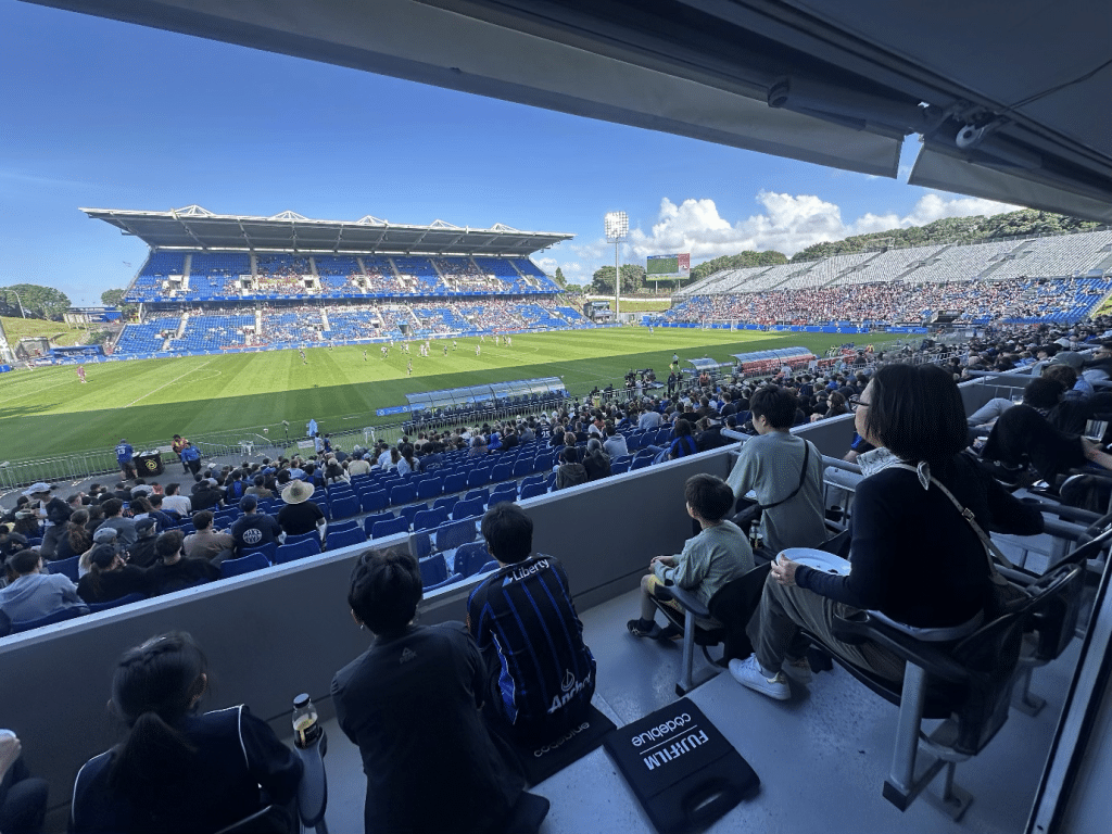 当日は、絶好の晴天に恵まれ、青空の下でサッカー観戦ができ会員の皆様と一緒に応援にも熱が入り、チャンスの度に何度も興奮とどよめきが湧きました。試合は、前半を1対1のドローで折り返し、後半79分にオークランドFCが豪快なミドルシュートで勝ち越し。見事、対戦相手のアデレード・ユナイテッドに2対1で勝利しました。